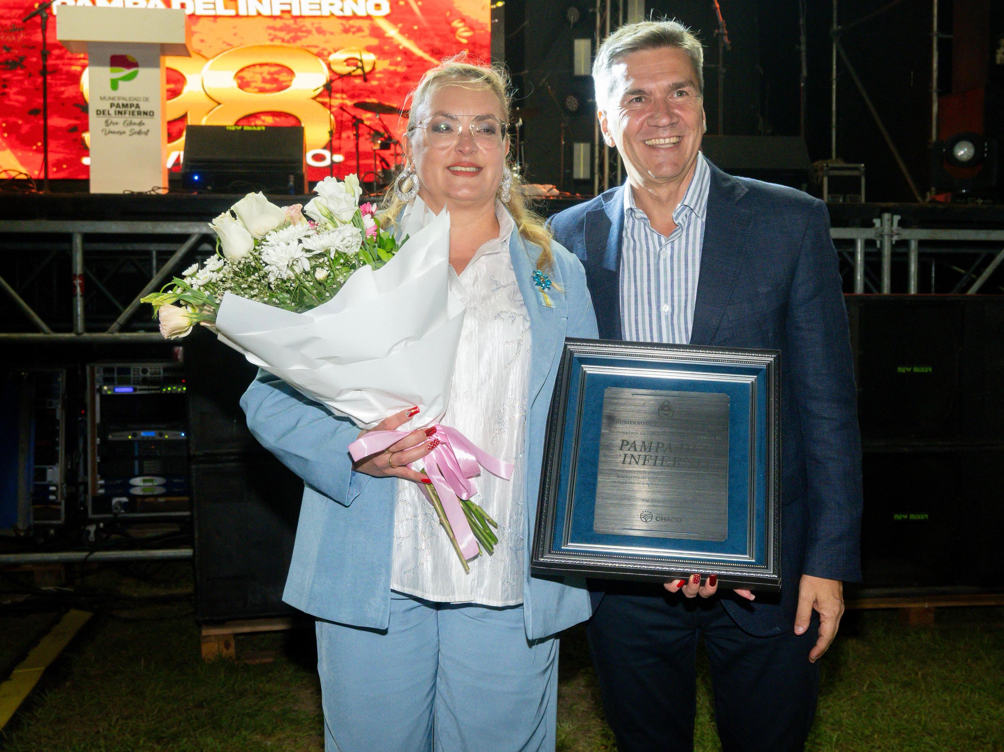 El gobernador Leandro Zdero acompañó anoche el acto por el 98° aniversario de Pampa del Infierno. Durante la ceremonia, también la Fundación Soy Chaco entregó ayudas técnicas a vecinos e instituciones de la localidad; mientras que el Instituto Provincial de Desarrollo Urbano y de Vivienda (IPDUV) otorgó títulos de propiedad a familias que aguardaron durante muchos años la regularización de sus terrenos. Además, se firmó un convenio entre el Ministerio de Seguridad y la Municipalidad para la creación de la Zona Interior Pampa del Infierno, que permitirá reforzar la presencia policial en la región.