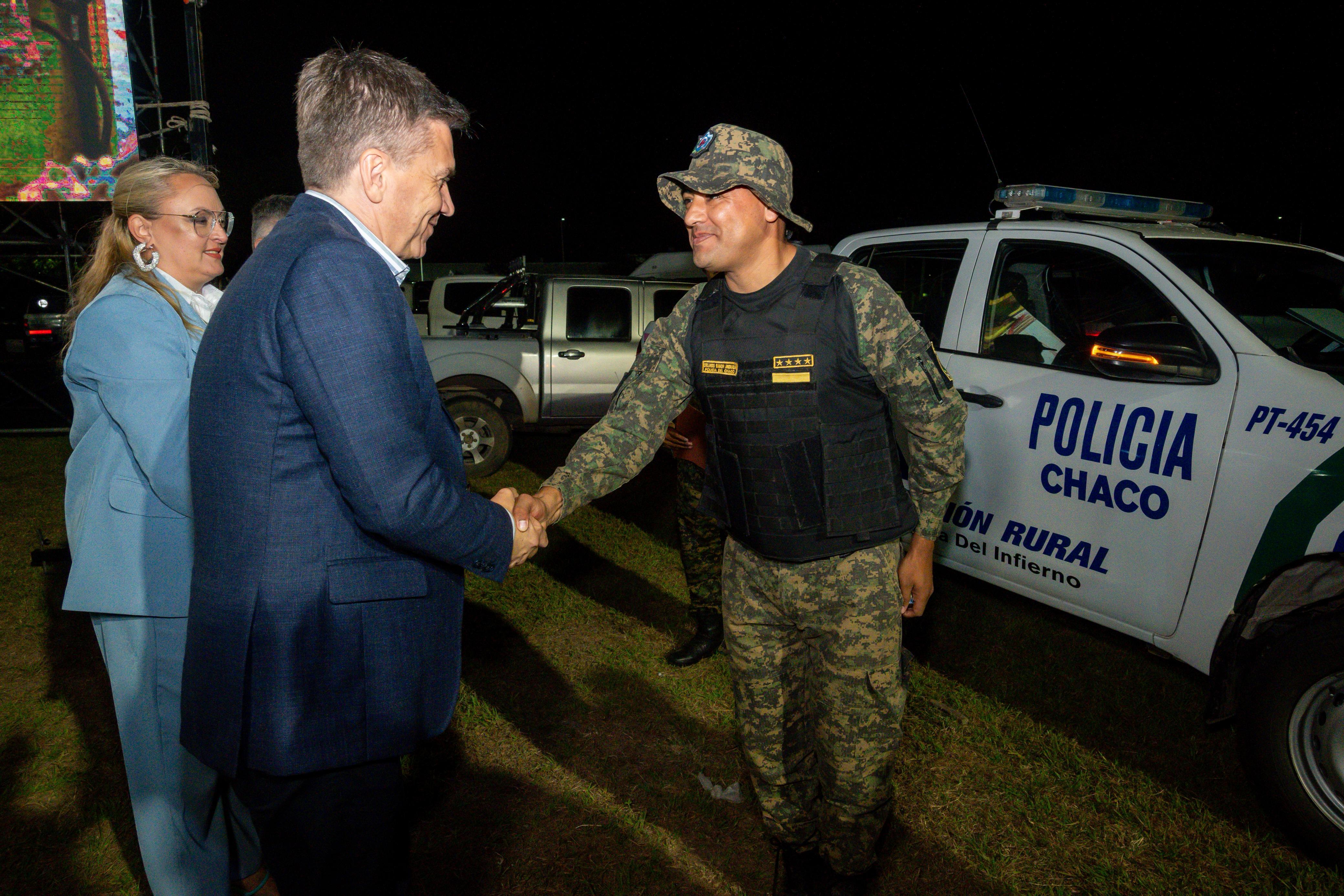 Acompañaron al mandatario la intendente Glenda Seifert; el ministro de Seguridad, Hugo Matkovich; el presidente del IPDUV, Fernando Berecoechea; la titular de la Fundación Soy Chaco, María Martina; el presidente del Instituto del Deporte, Fabio Vázquez; la presidente del Instituto de Tierras Fiscales, Ana María Canata; el subsecretario de Municipio, Marcelo Barrios y el vocal del mismo organismo, Lucio Beck.