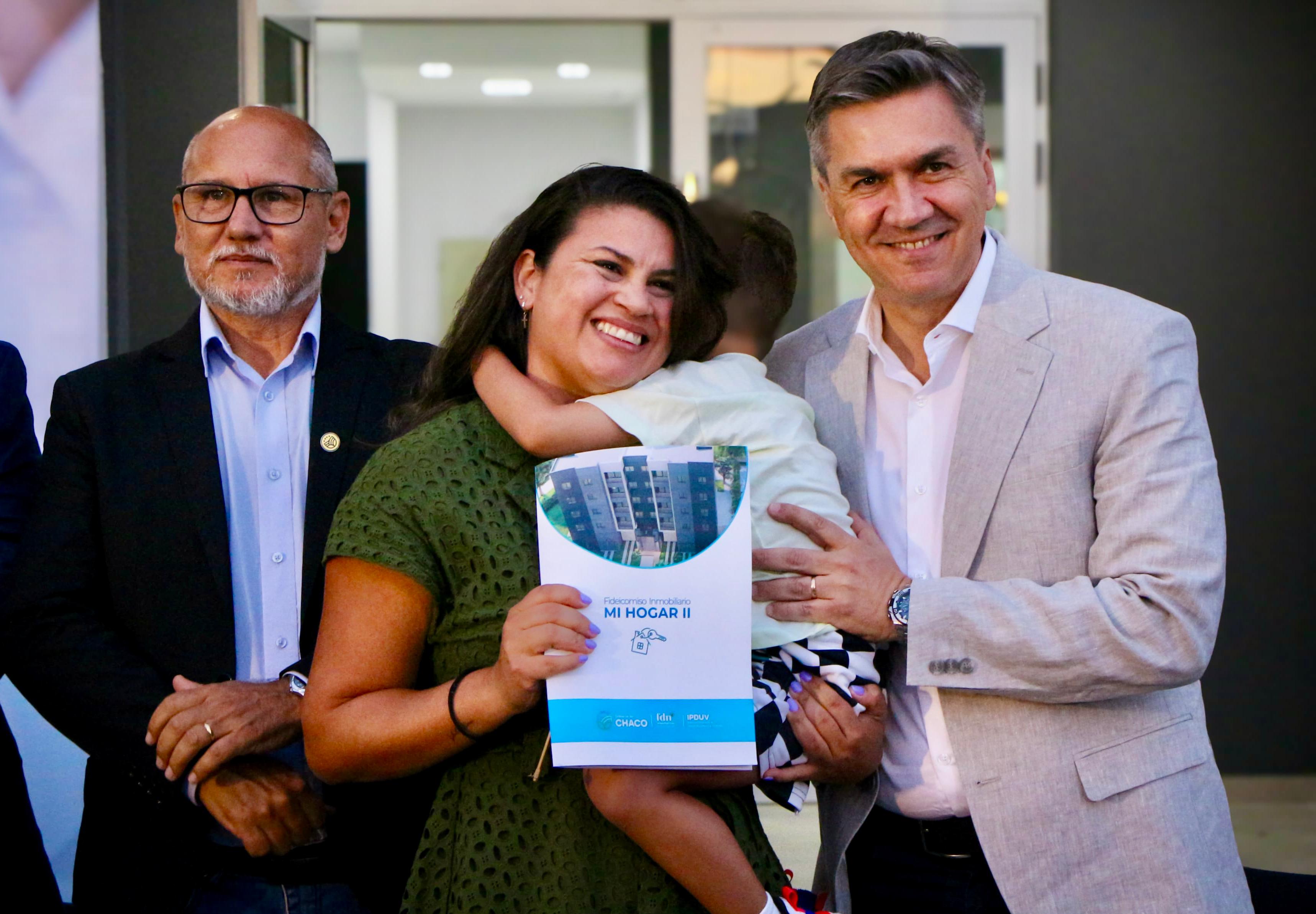 El gobernador Leandro Zdero entregó, este lunes, las llaves de 24 departamentos del edificio Piacentini, en Resistencia. Junto al mandatario provincial rubricó el presidente del Instituto de Desarrollo Urbano y Vivienda (IPDUV), Fernando Berecoechea y el titular de Fiduciaria del Norte, Gerardo Santos Oliveira rubricó un convenio para la apertura del Fideicomiso “Piacentini” e iniciar la construcción de 24 nuevas viviendas. “Tenemos el firme compromiso de avanzar en todas y cada una de las posibilidades de viviendas para todos los chaqueños”, ratificó Zdero.