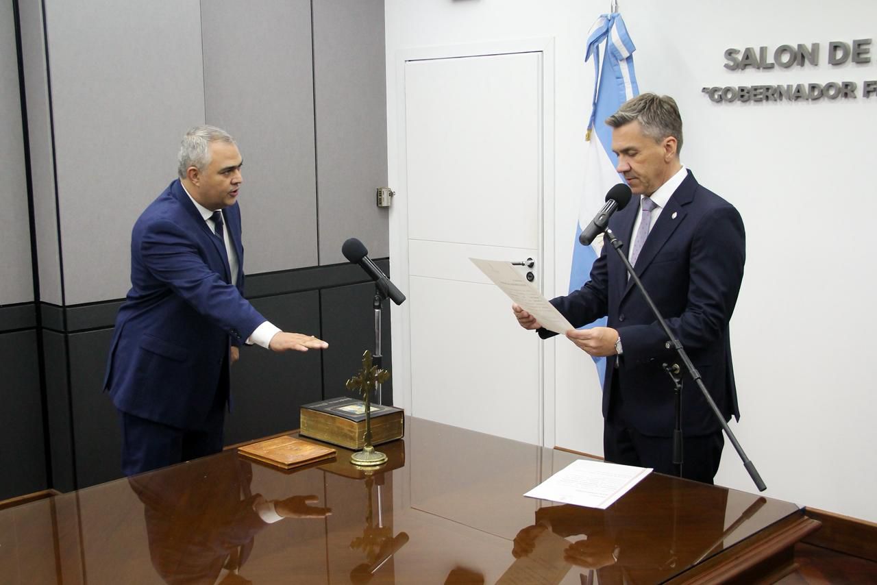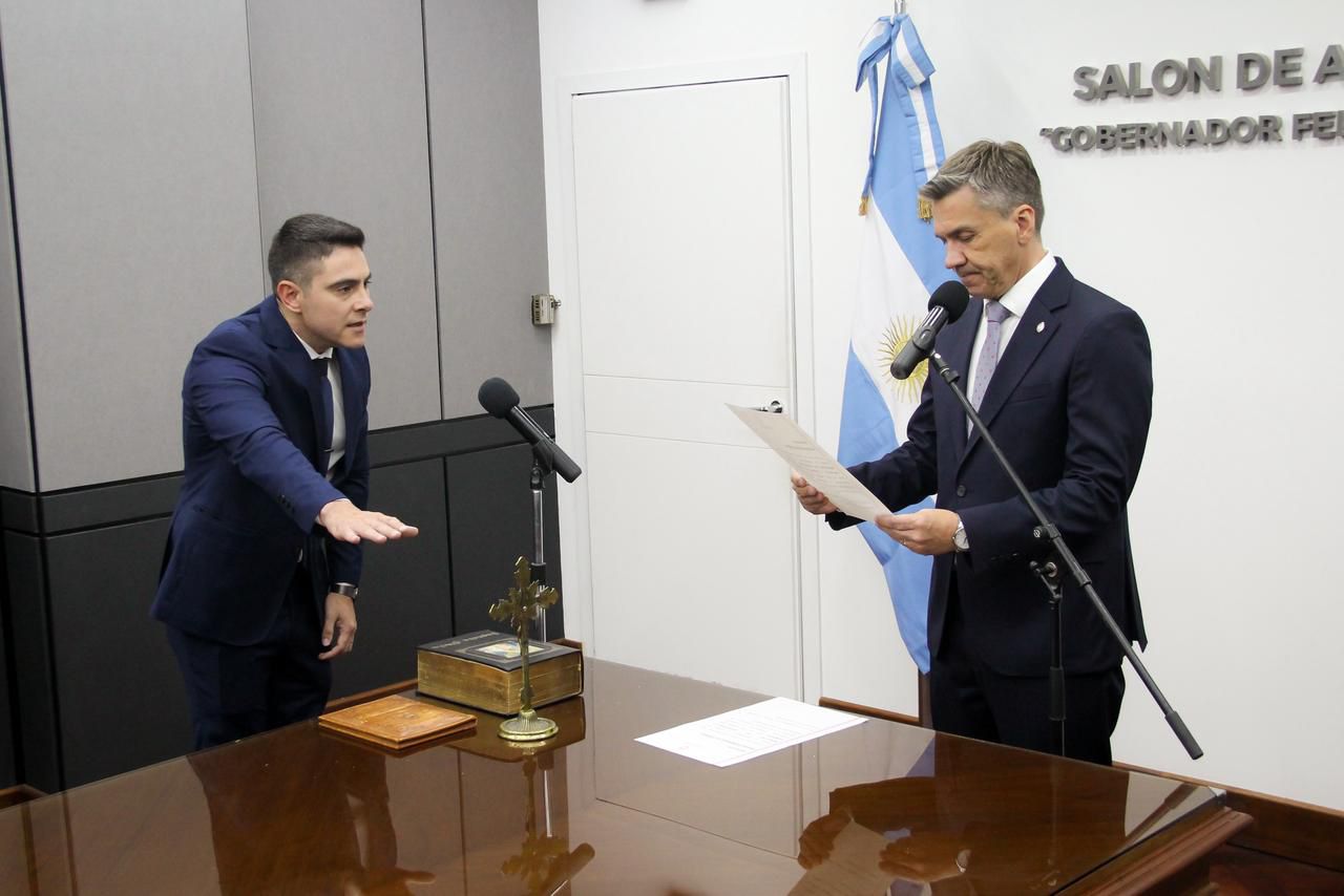 El gobernador Leandro Zdero tomó juramento, esta mañana en el Salón de Acuerdos de Casa de Gobierno, a Julio Ferro, quien asumió como ministro de Gobierno, Justicia, Trabajo y Derechos Humanos y a Diego Gutiérrez, quien quedó a cargo del Ministerio de Desarrollo Humano.