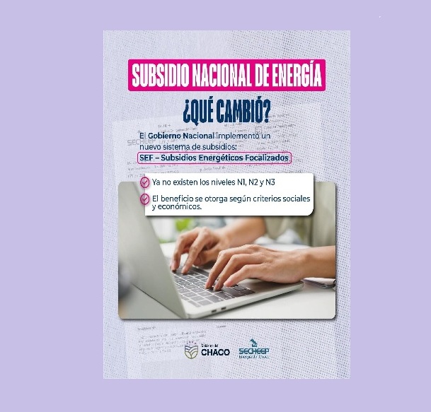 Ante la puesta en marcha del nuevo esquema de subsidios energéticos definido por el Gobierno Nacional, desde SECHEEP se informa a los usuarios del Chaco sobre los principales alcances de la medida y cómo impacta en la facturación del servicio eléctrico.