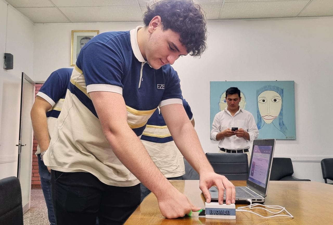 Asimismo, Elías Pavich Bois, uno de los estudiantes participantes del proyecto, explicó de qué se trata “Biomed”, “es un scaner biométrico portátil que, con el simple escaneo de tu dedo, podemos saber todos tus datos clínicos en caso de una emergencia”. En cuanto a cómo surgió la idea para este proyecto, Elías contó que se les ocurrió luego del fallecimiento del abuelo de uno de sus compañeros a causa de que faltaba información a la hora de tratarlo. “Los paramédicos no sabían quién era ni de qué sufría. En lo que tardaron en descubrirlo, lamentablemente, falleció en camino al hospital, esto nos motivó a buscar una solución para una problemática que puede sucederle a cualquiera”.