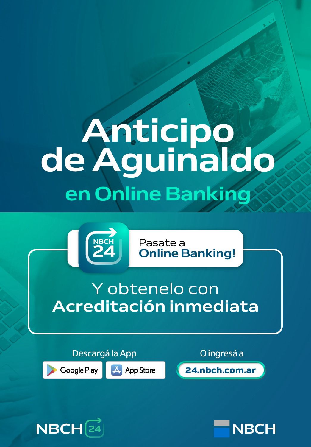 También se puede sacar el anticipo de aguinaldo a través de cajeros automáticos, con acreditación 48 horas. Y en las sucursales NBCH de toda la provincia.