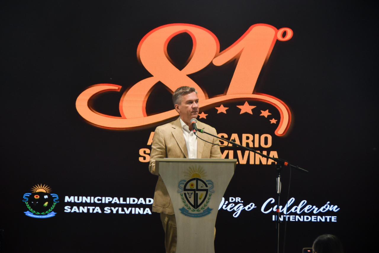 En el marco del aniversario 81° de la localidad, el mandatario provincial valoró la continuidad del proyecto político iniciado por Susana Maggio y que hoy continúa Diego Calderón. “Mi reconocimiento a Susana Maggio, una mujer con un profundo amor por Santa Sylvina, y también a Diego Calderón, que hoy asume esta responsabilidad junto a su equipo para seguir transformando la ciudad”, afirmó. “Hoy Santa Sylvina muestra claramente un antes y un después. Se nota la pujanza de su gente y una administración responsable que planifica y gestiona para que la ciudad no se detenga”, expresó.