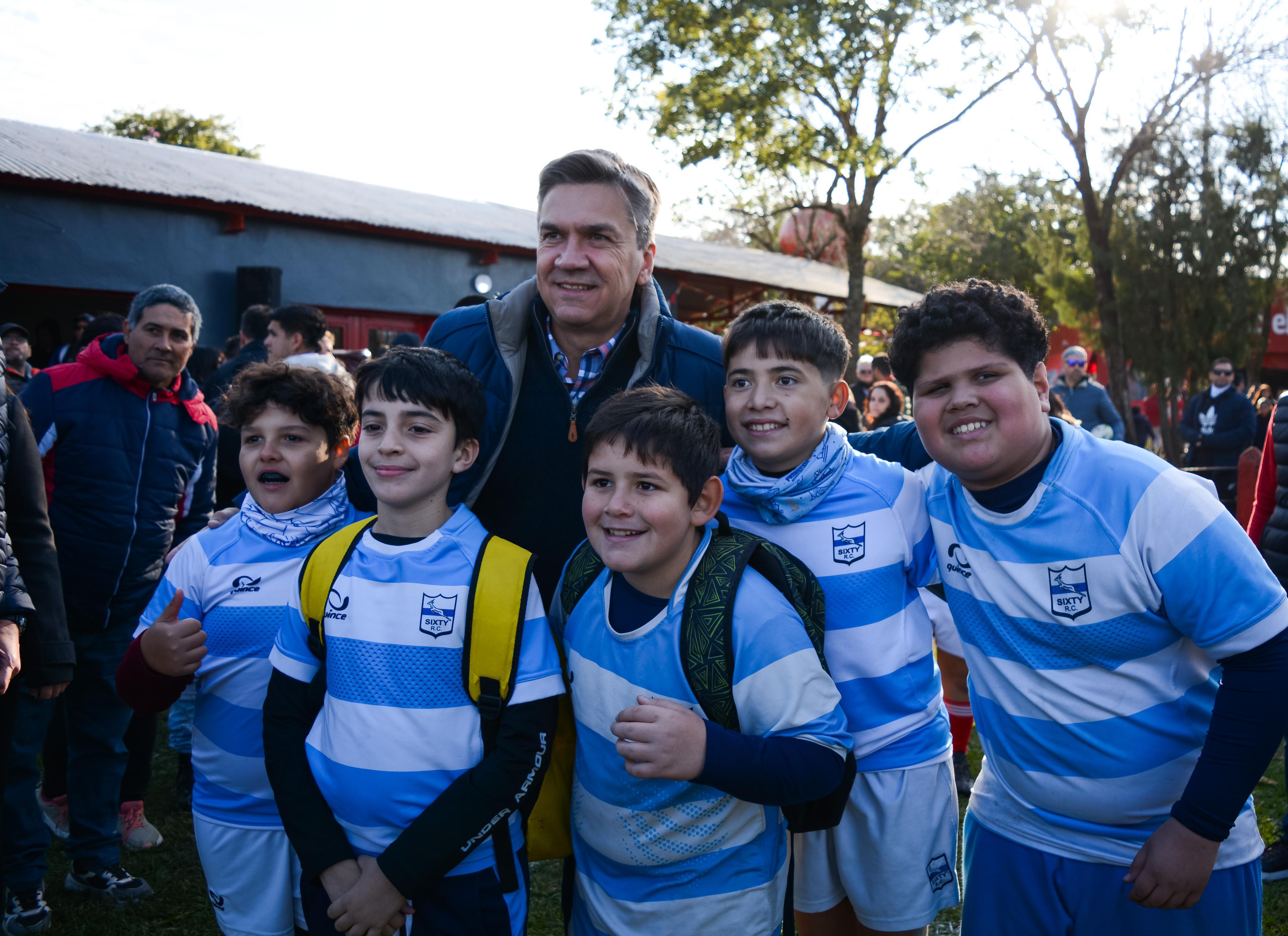 Sobre la importancia de la fecha y el Encuentro de Rugby que se está realizando, el gobernador acompañado también por la subsecretaria de Desarrollo Territorial, Alicia Ogara, agregó: “el deporte contiene, el deporte afianza valores que queremos recuperar, como la solidaridad, el compañerismo, el respeto, la construcción que tiene también a partir del acompañamiento de la familia. Ustedes verán acá los chicos, vienen con sus papás, con sus abuelos, que los alientan a esto y aparte de recuperar los valores que los contienen los impulsa a la actividad al aire libre”.