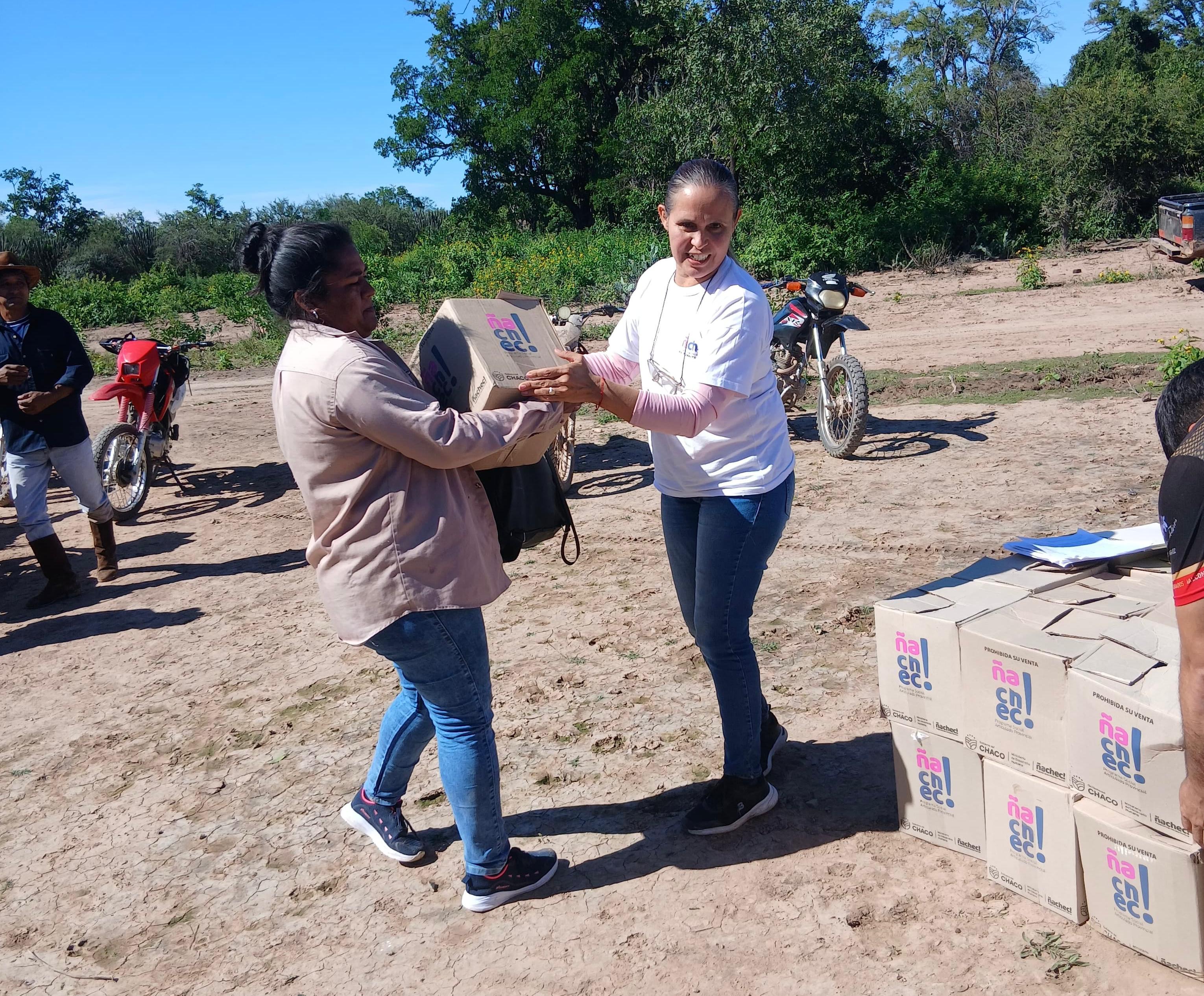 El operativo se ejecuta mediante un trabajo territorial coordinado, junto a la coordinadora Silvana Pérez con referentes en distintas localidades, y en articulación con el municipio de Misión Nueva Pompeya, que aporta maquinaria y logística, como tractores y acoplados, para acceder a zonas de difícil ingreso como El Caudillo, La Ensenadita y Lagunita.