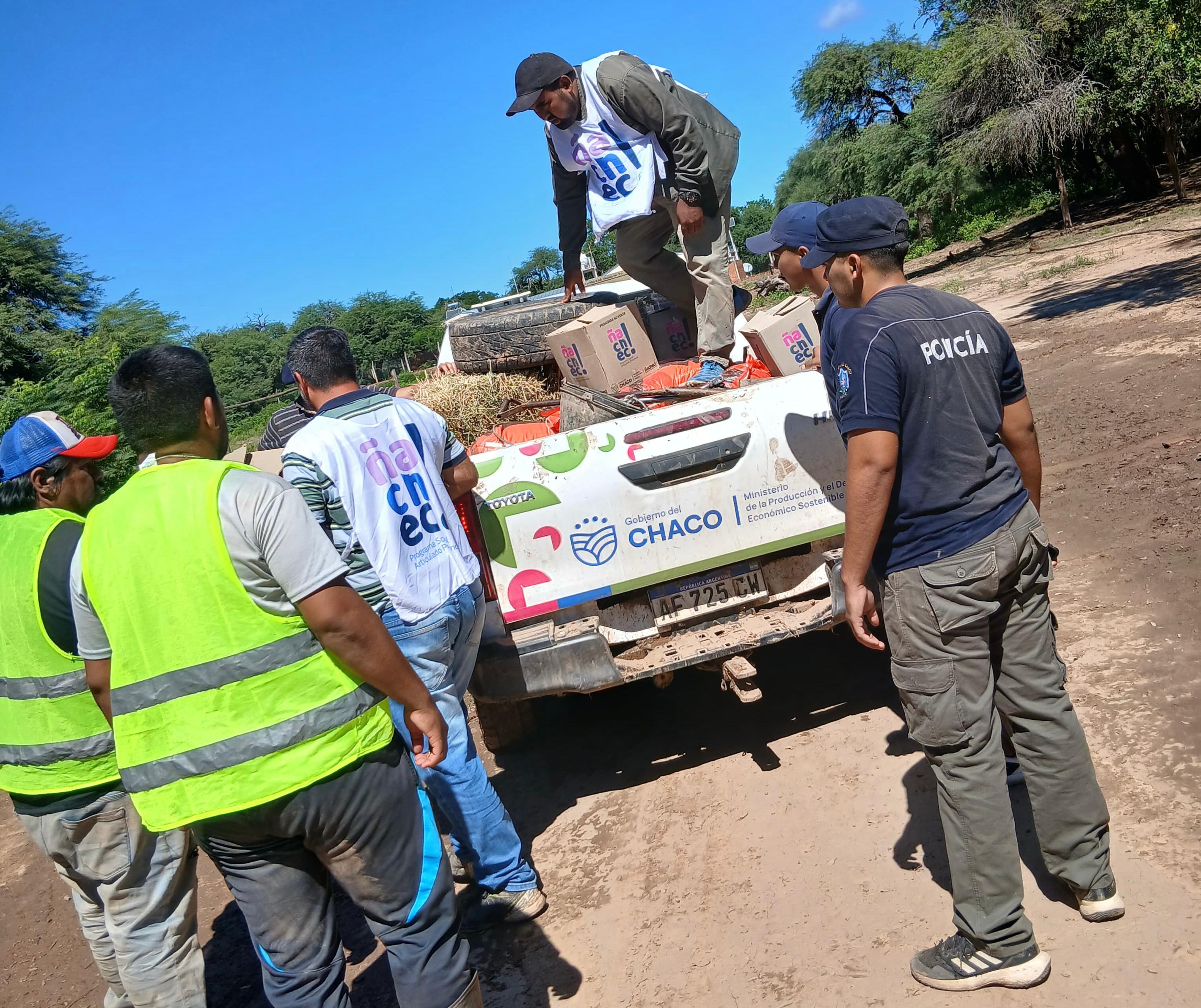 El despliegue incluye operativos en parajes rurales. En este sentido, el facilitador Javier Torres detalló: “Las entregas se realizaron en el paraje Güemes con módulos, colchones, frazadas y forrajes para animales como maíz y alfalfa; armamos campamentos en un trabajo coordinado con la municipalidad, el Progano, la Policía del Chaco y vecinos”.