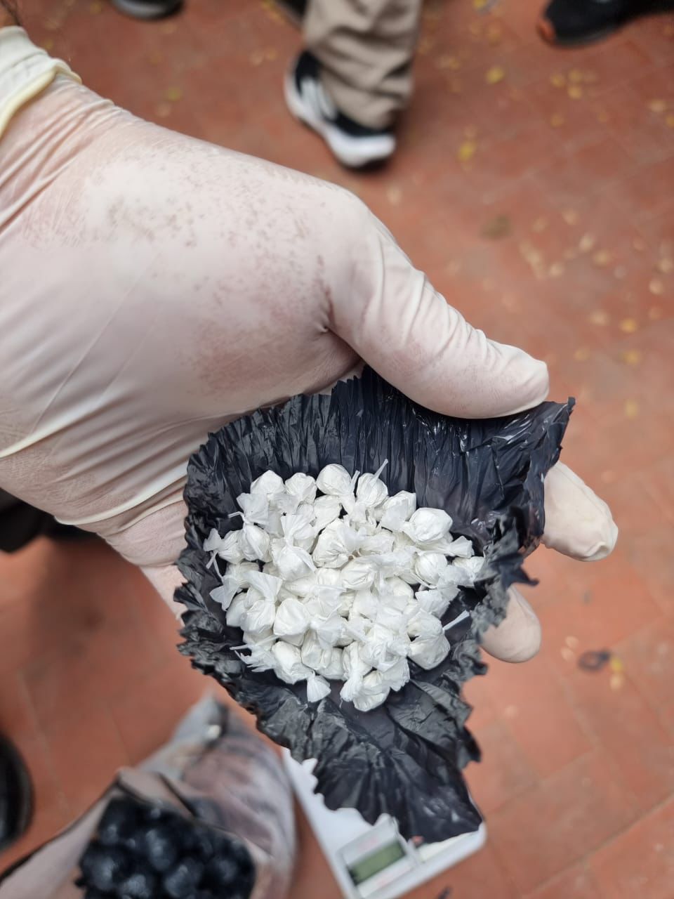 Dentro del inmueble se detuvo a un hombre de 43 años y se secuestraron dos ladrillos compactos de cocaína envueltos en cinta amarilla, además de numerosas “bochitas” listas para la venta al menudeo, una balanza de precisión y un cuaderno con anotaciones del narcomenudeo. En total, la droga incautada pesó 3,168 kilos (2,050 kg en ladrillos y 1,118 kg fraccionada).