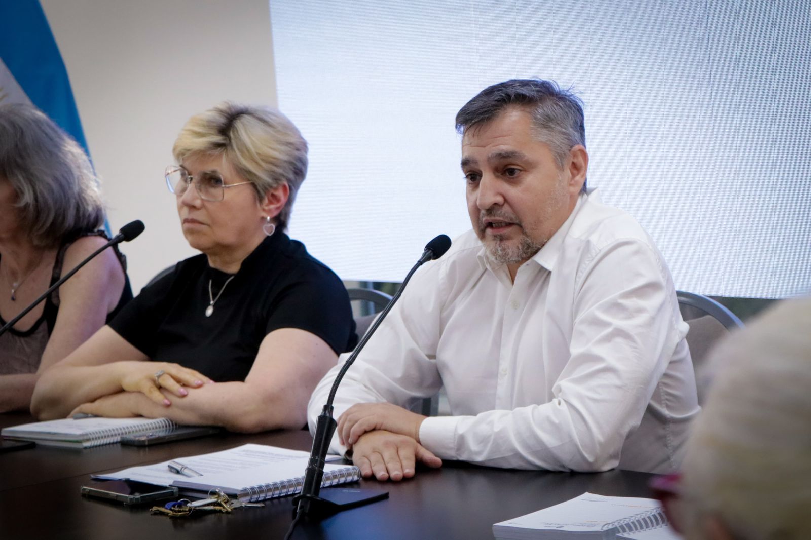Acompañaron a los ministros en esta reunión en el Salón Obligado, la subsecretaria de Educación, Isabel Sanchuk, y la subsecretaria de Trabajo, Noel Ibarra.
