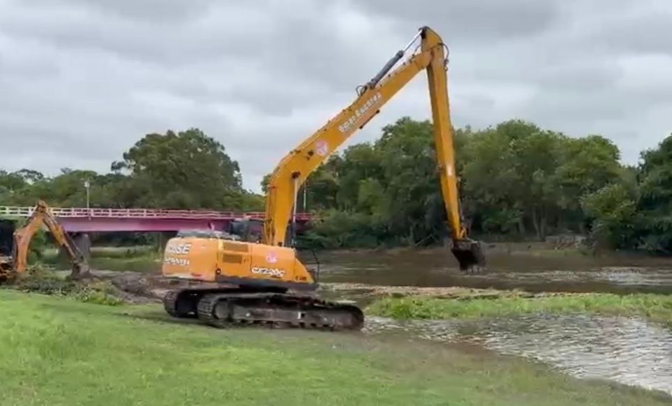En Resistencia, la Administración Provincial del Agua (APA) lleva adelante tareas de limpieza de vegetación acuática y residuos que obstruyen el Río Negro, en el tramo comprendido entre los puentes “San Fernando” y “Ejército Argentino”, frente al Domo del Centenario.