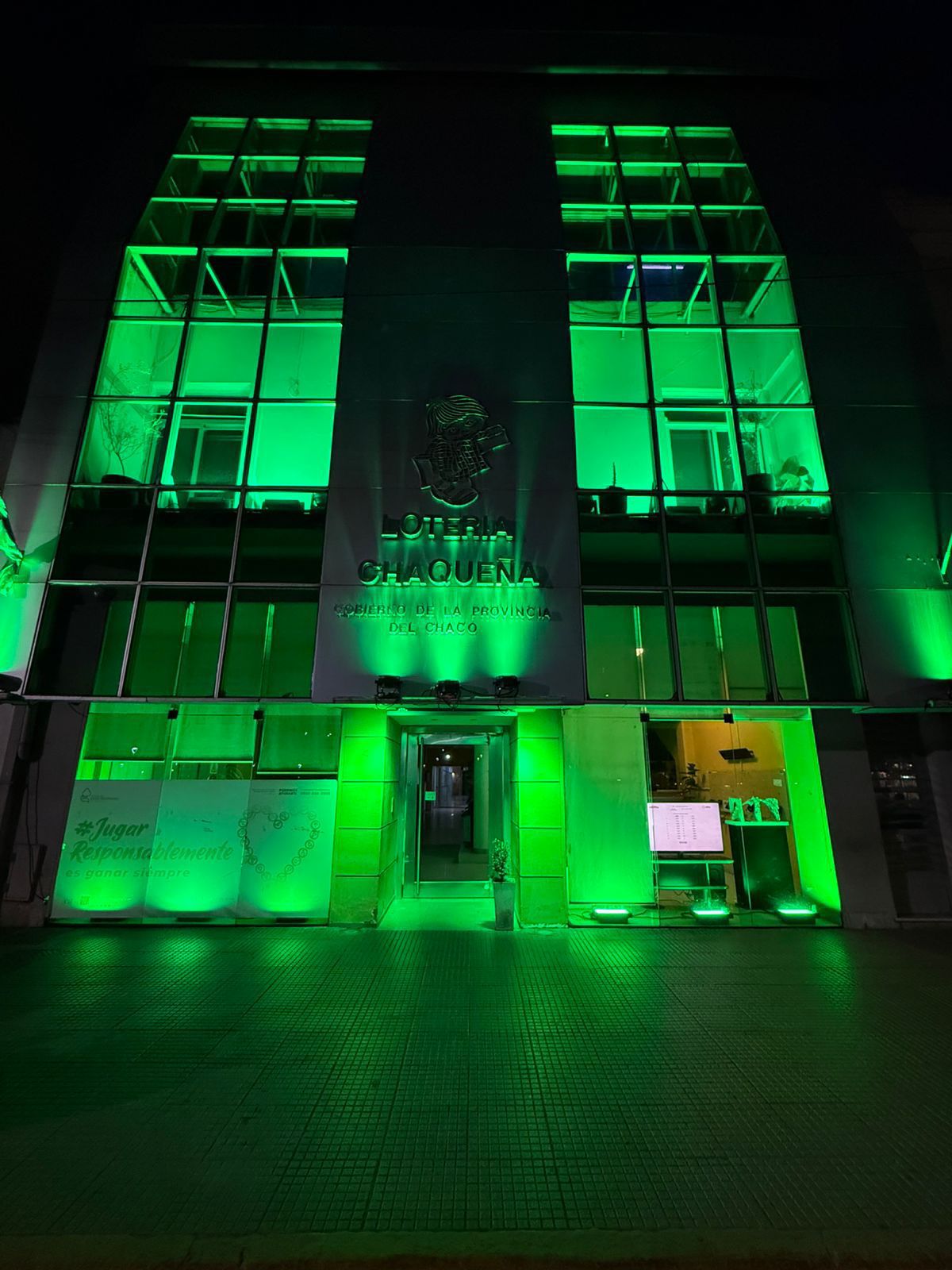 Como miembro de la Asociación de Loterías Estatales de Argentina (ALEA), el organismo provincial se sumó a la campaña nacional de concientización que consistió en iluminar de verde la fachada de sus edificios ubicados en Güemes 46, Avenida 9 de Julio 145 y Frondizi 75 de Resistencia.