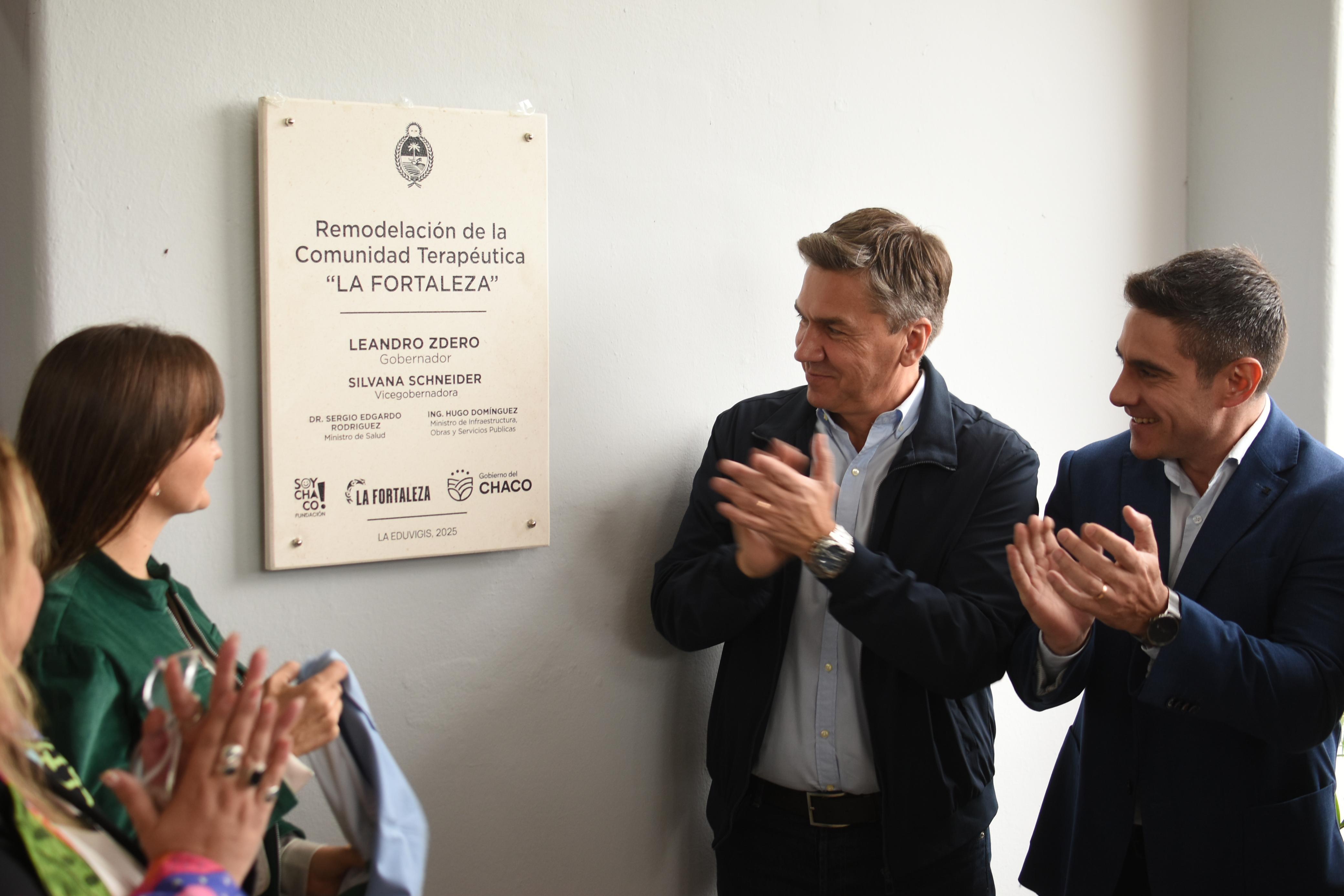 El gobernador Leandro Zdero y la vicegobernadora Silvana Schneider inauguraron, este martes, obras de refacción e impusieron el nombre de Comunidad Terapéutica de Abordaje en Consumos Problemáticos “La Fortaleza” al ex Centro Integral Terapéutico de Atención La Eduvigis.