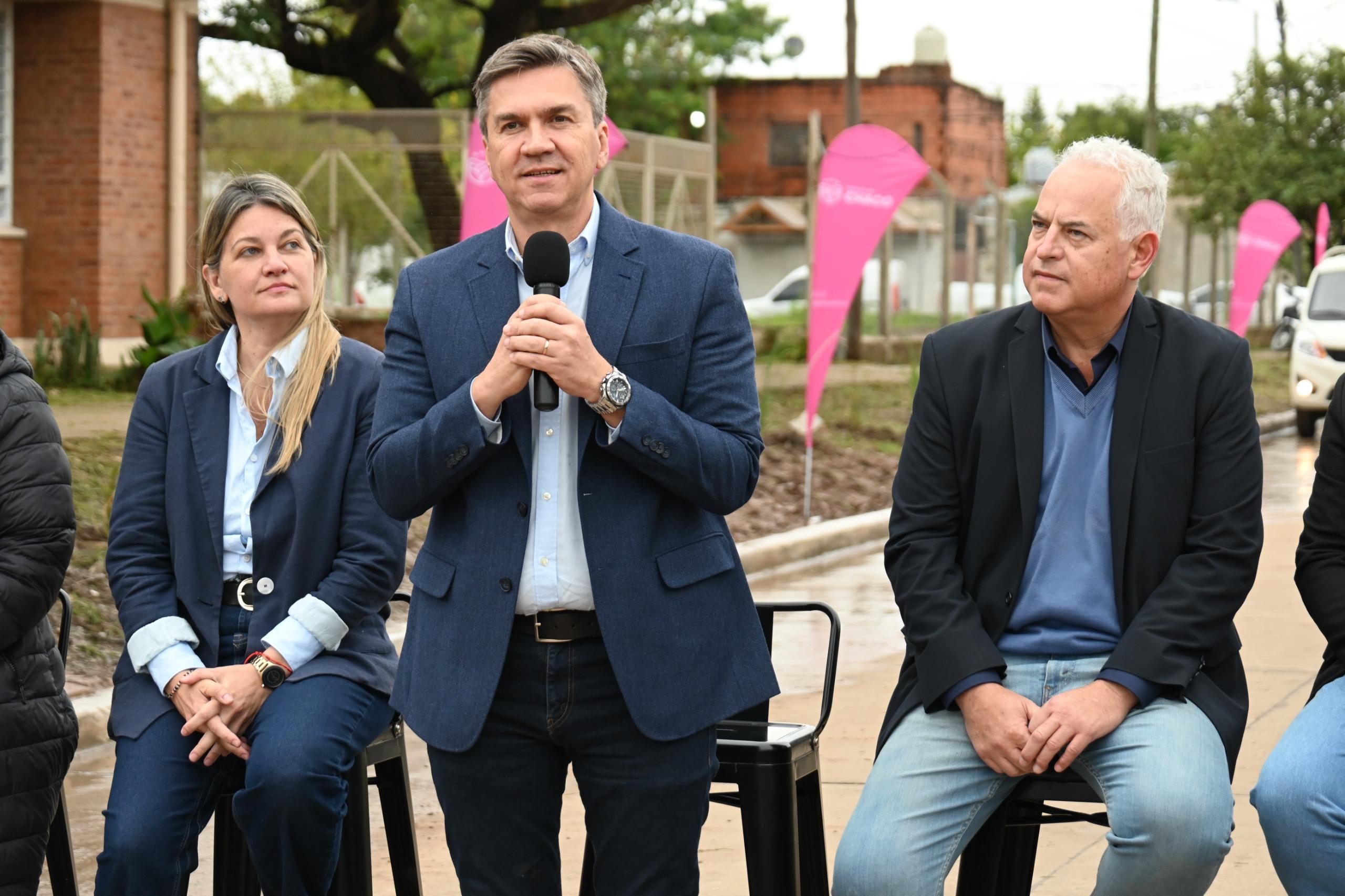 De este modo, las autoridades habilitaron las obra de pavimento financiada íntegramente con fondos provinciales a través de la DVP, incluyendo 72 rampas para personas con discapacidad ejecutadas en los puntos estratégicos de circulación del barrio, que mejoran la accesibilidad e inclusión y, junto a los desagües pluviales y la iluminación led “forman parte del realce del perfil urbano de la ciudad”, aseguró Zdero, acompañado también por el ministro de infraestructura, Hugo Domínguez, la secretaria general, Carolina Meiriño; el sub administrador de Vialidad Gustavo De Martini; el presidente de Secheep, José Bistoletti; el secretario económico de la municipalidad de Rcia, Ricardo Roffé y el diputado provincial Carlos Salom.