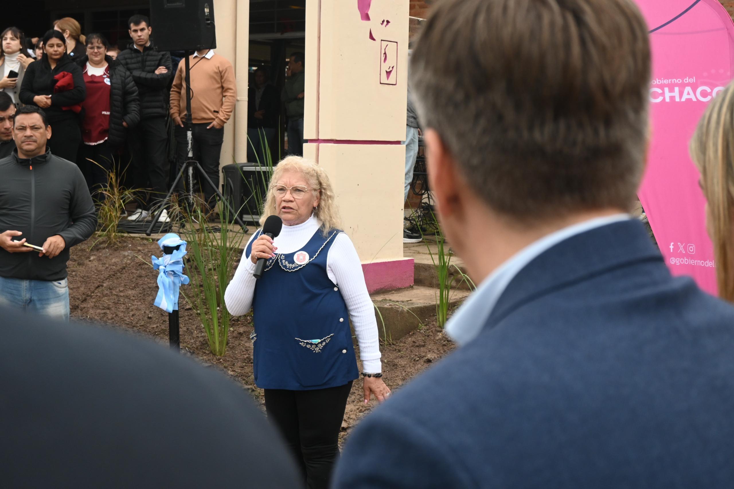 “Este pavimento va a beneficiar a muchísimos vecinos, pero va a unir también instituciones (la Escuela Primaria N°698, el jardin de infantes, como así también la biblioteca)”, insistió el Gobernador.