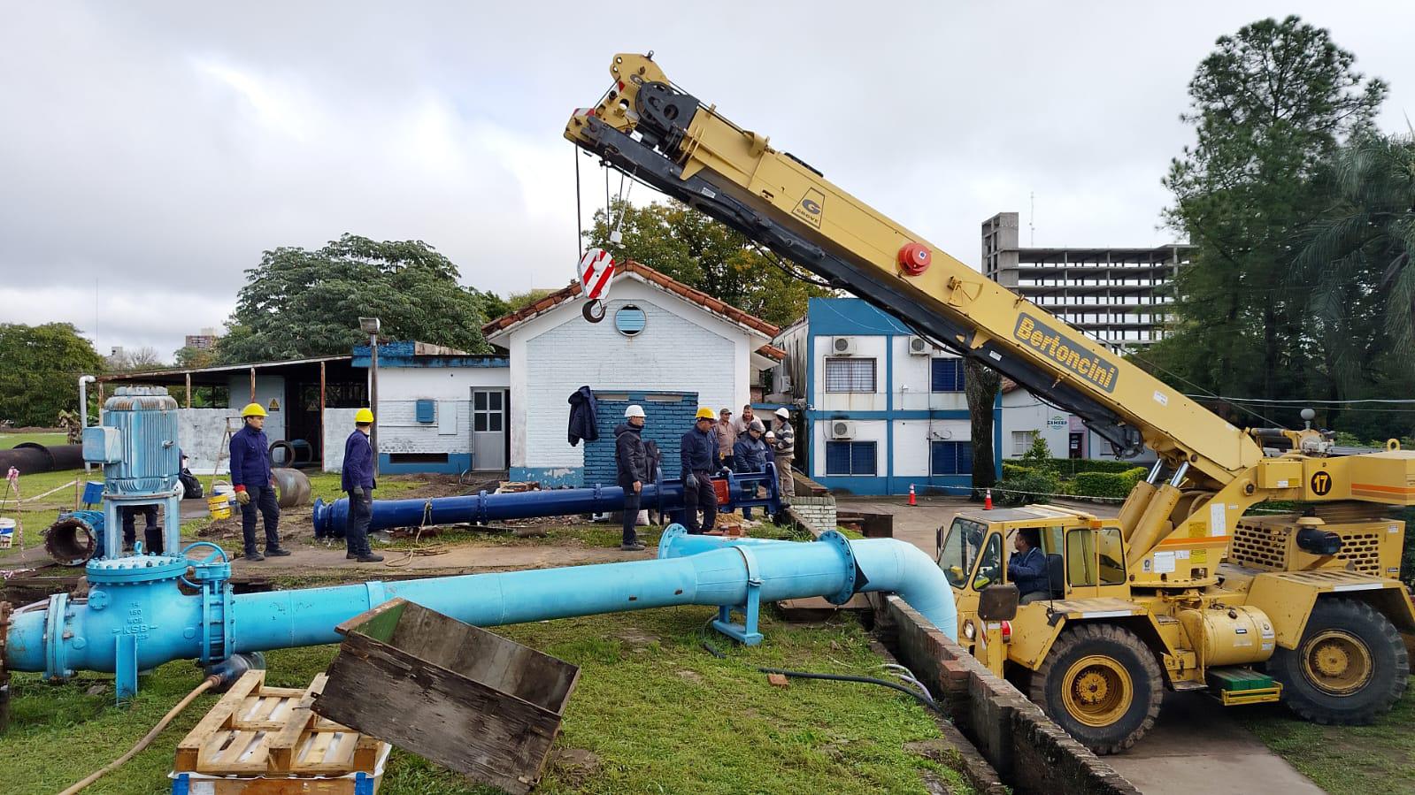 Altamirano acotó que “las nuevas bombas, que tienen una capacidad superior de 1.000 m3/h, abastecerán y reforzarán toda la zona de influencia en cuanto a la distribución de agua potable. El trabajo para la instalación de los equipos es complejo por su magnitud, pesan más de 3.200 kilos, por lo que se debe usar una grúa de gran porte”.