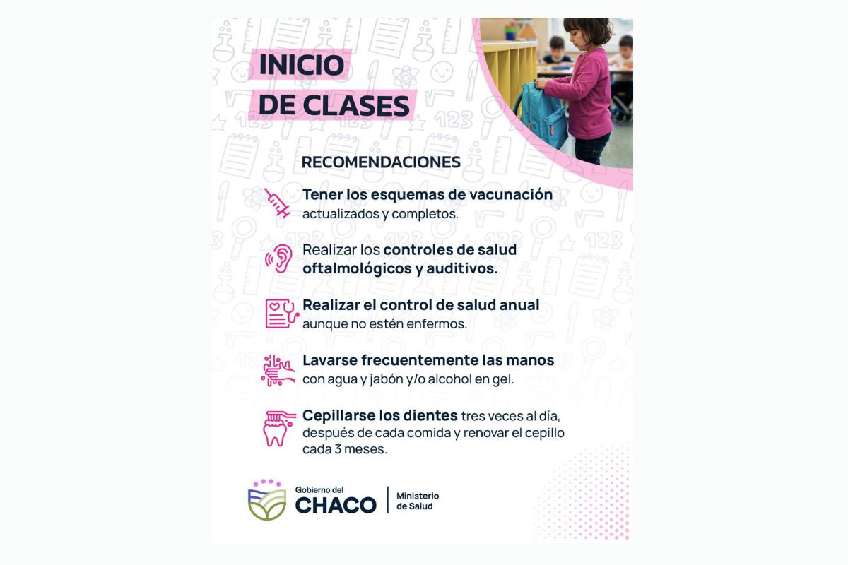 A pocas semanas del inicio del ciclo lectivo, el Ministerio de Salud recuerda la importancia de adoptar medidas básicas para garantizar un regreso a clases seguro y saludable. La cartera sanitaria insta a las familias a verificar el estado de salud de niños y adolescentes y a cumplir con los controles necesarios, antes de la vuelta a las aulas.