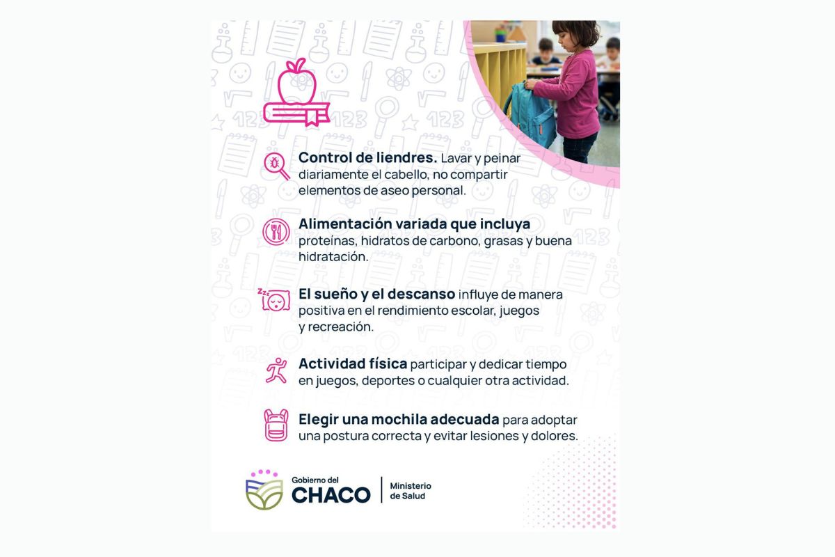 Desde los centros de salud y hospitales se recomienda acercarse para consultar y completar los esquemas de vacunación, así como realizar el control sano correspondiente a cada edad. Estas acciones son fundamentales para prevenir enfermedades y asegurar un adecuado desarrollo durante el año escolar. Asimismo, en el hogar se aconseja reforzar los hábitos de higiene personal, revisar periódicamente el cuero cabelludo ante la posible presencia de piojos o liendres y promover rutinas de buen descanso, claves para el rendimiento académico y el bienestar general de los estudiantes.