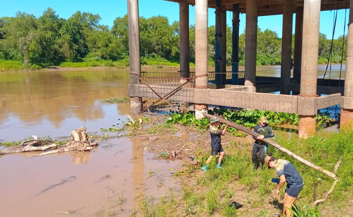 Además, en el marco de las tareas de desobstrucción de carrizales, troncos y ramas, colaboran equipos del COE pertenecientes a la Policía del Chaco, a quienes la empresa agradeció por su rápida intervención.
