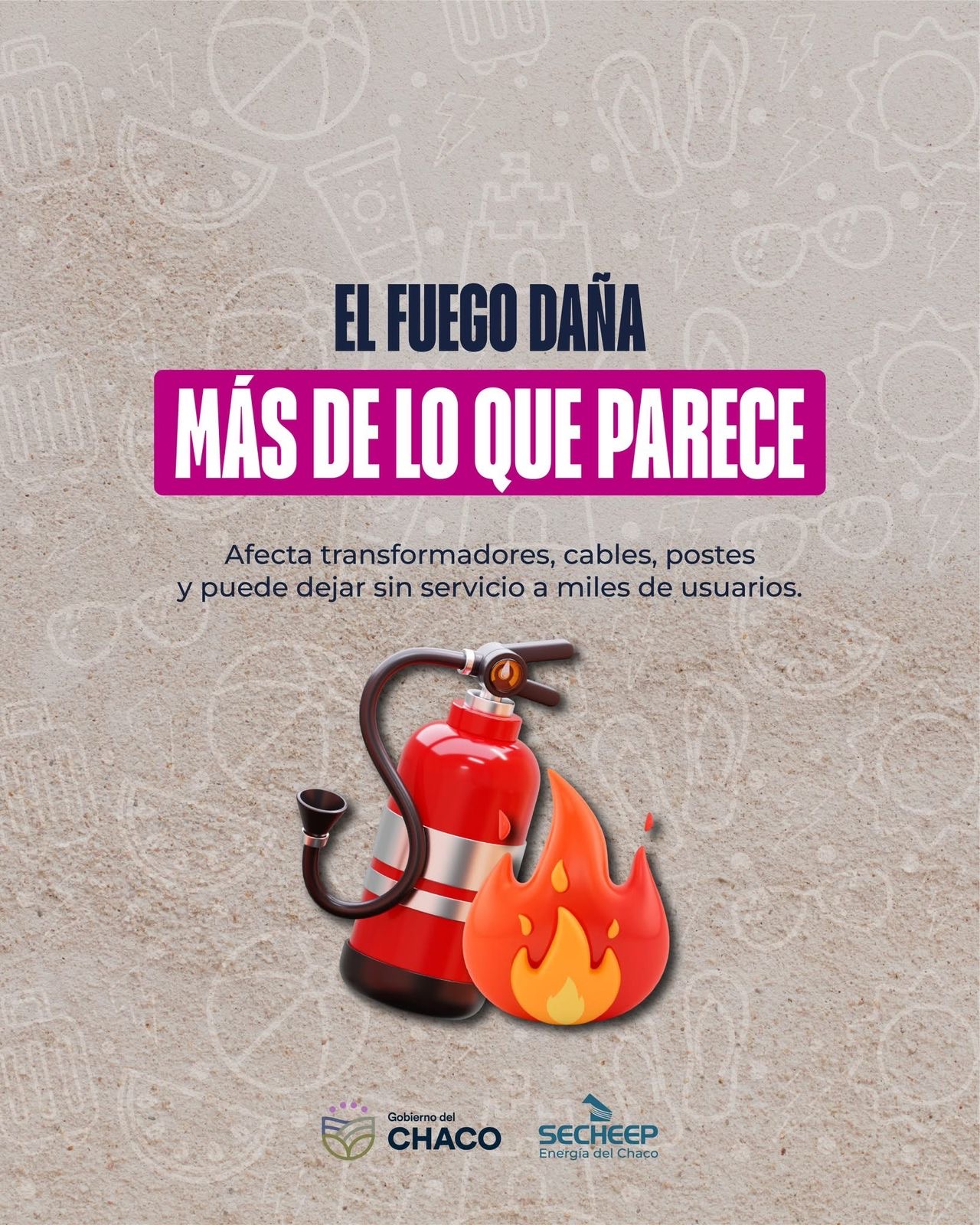 Desde la empresa advirtieron que la quema de pastizales, residuos o basura en zonas cercanas a líneas eléctricas representa un riesgo grave, ya que los incendios pueden provocar daños en transformadores, cables y postes, generando cortes del suministro que afectan a miles de chaqueños.