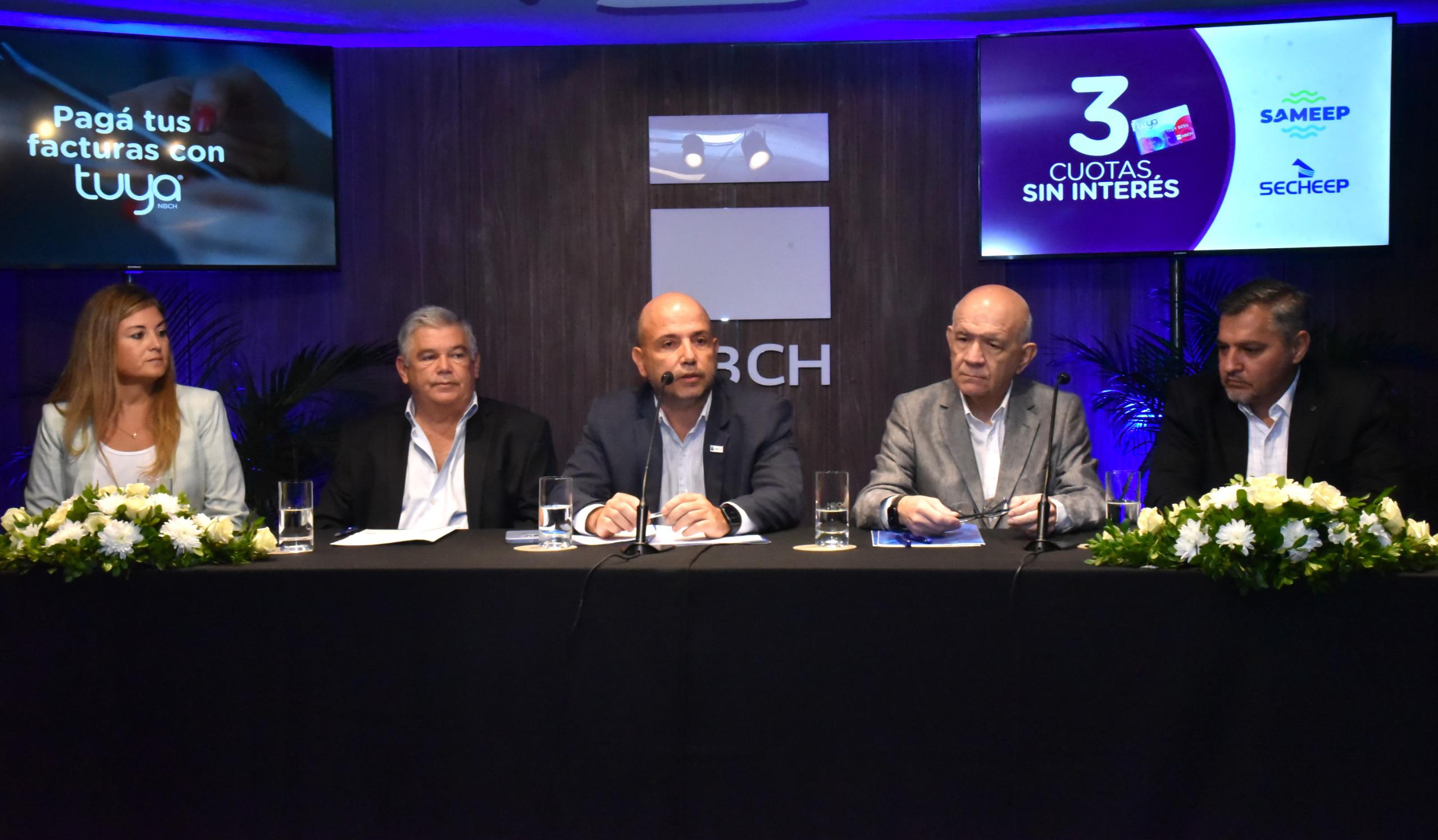 El Gobierno provincial lanzó un plan de financiamiento, a través del Nuevo Banco del Chaco, en cuotas sin interés por medio de la Tarjeta Tuya para el pago de facturas de Secheep y Sameep. Así lo informaron, este viernes, en conferencia de prensa el ministro de Hacienda y Finanzas Alejandro Abraam y el presidente del NBCh Germán Dahlgren, junto a autoridades de las empresas estatales de agua y energía. El objetivo es facilitar el pago de los servicios ante el incremento de las facturas debido a la quita de subsidios por parte de Nación.