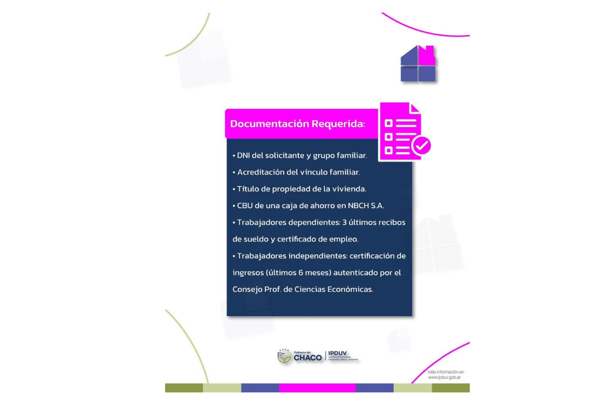 Los interesados deberán acreditar la titularidad de su vivienda mediante un boleto de compra-venta o un título de propiedad, según corresponda. Para aquellos que hayan recibido viviendas del Estado o del FONAVI, será necesario presentar el acta de adjudicación o la escritura correspondiente, además de estar al día con los pagos.