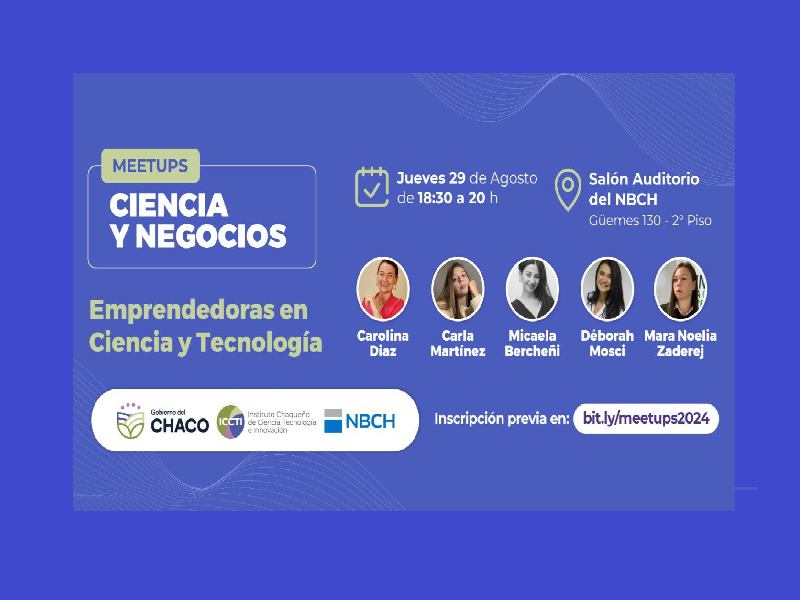 El próximo jueves 29 de agosto se llevará a cabo una nueva edición de los Meetups Ciencia y Negocios, un ciclo de charlas organizado desde el área de Empresas de Base Tecnológica del Instituto Chaqueño de Ciencia, Tecnología e Innovación (ICCTI). En esta ocasión, el encuentro estará centrado en la temática de Emprendedoras en Ciencia y Tecnología, con el objetivo de visibilizar y fomentar el rol de la mujer en estos campos, promoviendo el surgimiento de nuevas iniciativas empresariales en la región.