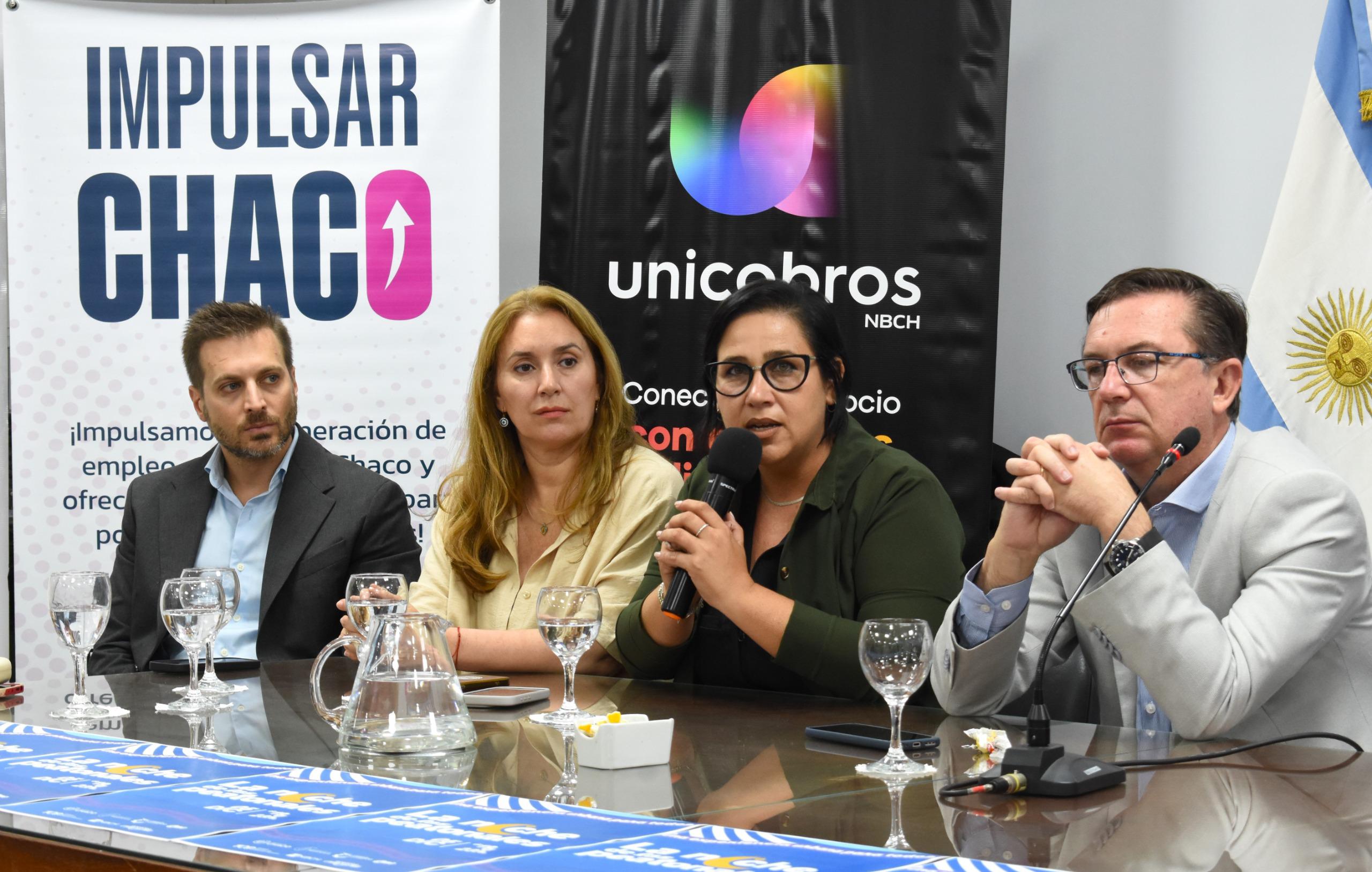 La presentación del evento estuvo encabezada por la subsecretaria de Trabajo Noelia Ibarra; el secretario coordinador de Gabinete, Livio Gutiérrez; el vocal de la Cámara de Comercio, Juan Martín Alonzo; y la jefa del departamento de Tarjetas de Créditos del NBCh, Magalí Berman.