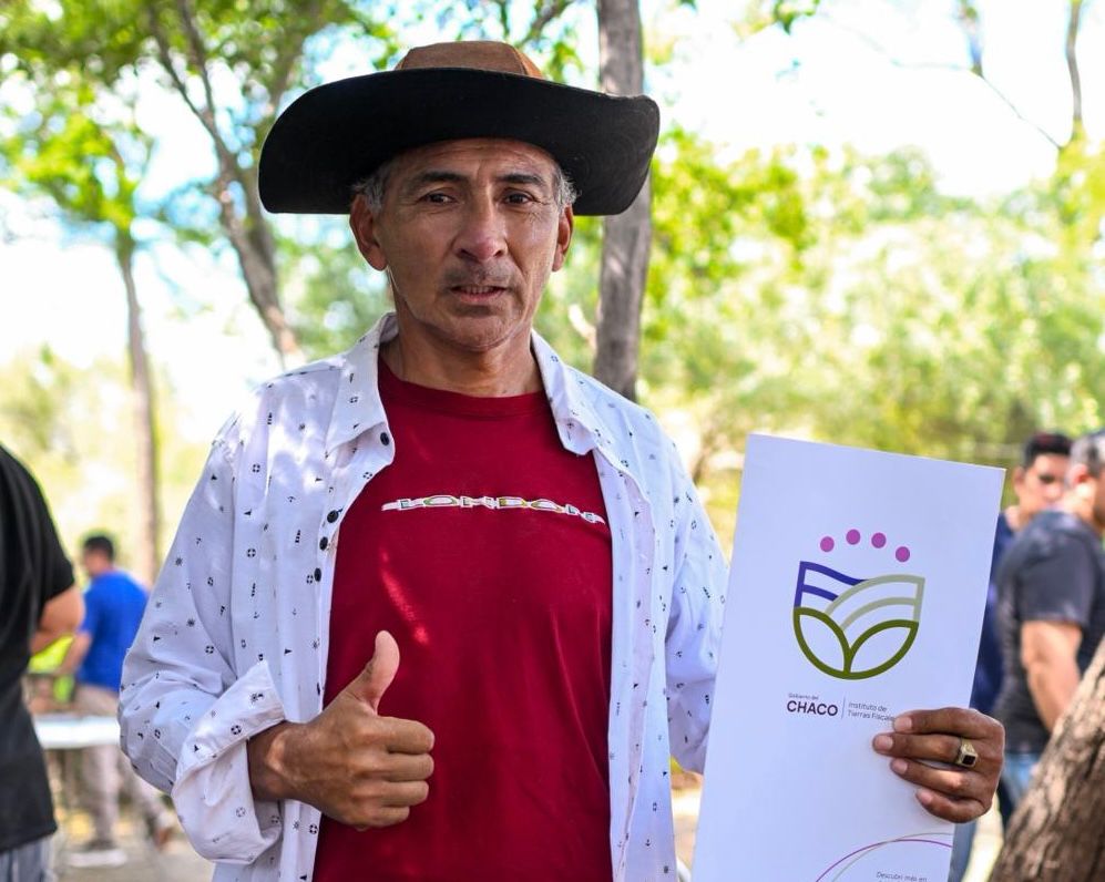 En el Paraje La Lagunita, zona rural cercana a Misión Nueva Pompeya, el gobernador Leandro Zdero junto al intendente Vicente González y a la presidente del Instituto de Tierras Fiscales, Marilyn Canata concretaron una histórica entrega de adjudicaciones de tierras a familias que esperaron durante décadas la regularización de su situación dominial.