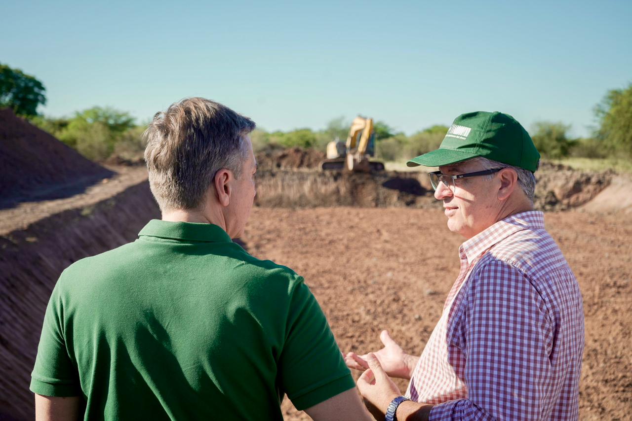 Esta tarde, el gobernador Leandro Zdero junto al ministro de la Producción y el Desarrollo Económico Sostenible Oscar Dudik, constató el avance de obras de represas comunitarias que se ejecutan en la zona rural de Villa Berthet, en el marco de un programa provincial orientado a optimizar el manejo del agua para el sector productivo.