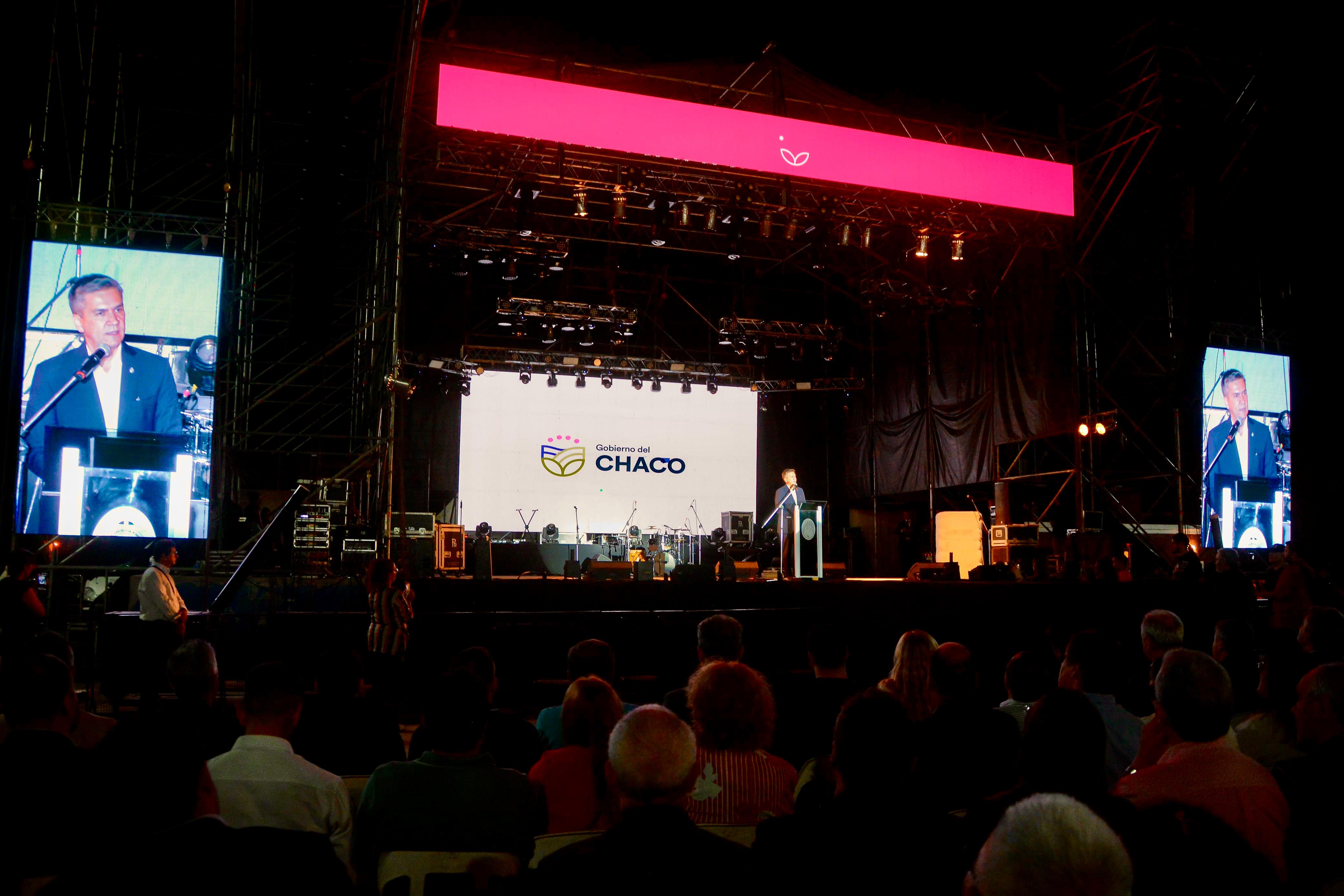 Esta noche, en el marco de esta inauguración, el Gobernador Zdero anunció un “refuerzo económico” de 500 millones de pesos para la compra de insumos y semillas, de la campaña 2024-2025, que alcanzará a más productores y la descentralización del Ministerio de la Producción, con más presencia en territorio, en Sáenz Peña, para continuar atendiendo al sector. La apertura, contó además con un emotivo saludo de Don Luis Landriscina, el Embajador y abanderado del Chaco.